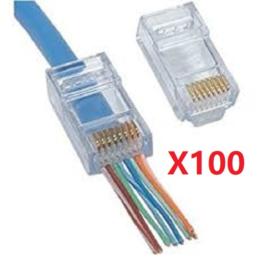 This modular RJ45 Cat5e connector is a pass through style, 8 position, 8 conductor plug. It’s typically terminated on 4 pair solid or stranded round Cat5e cable. It’s pass through style design makes the wire insertion process simple and quick.