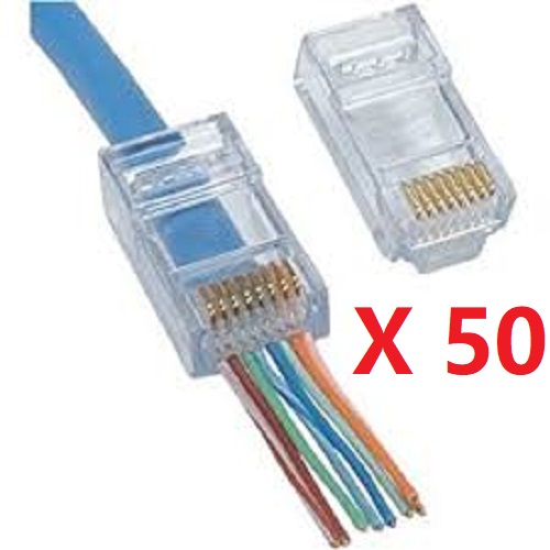 RJ45 Cat5e Pass-Through Plug for Solid or Stranded Round Cable,Pack of 50 pcs